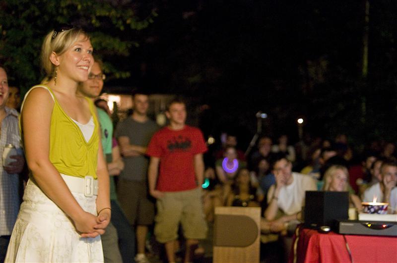 The students came together late Thursday in a small backyard under the title “Campaign for Change” to watch Sen. Barack Obama, D-Ill., accept the Democratic nomination for president.