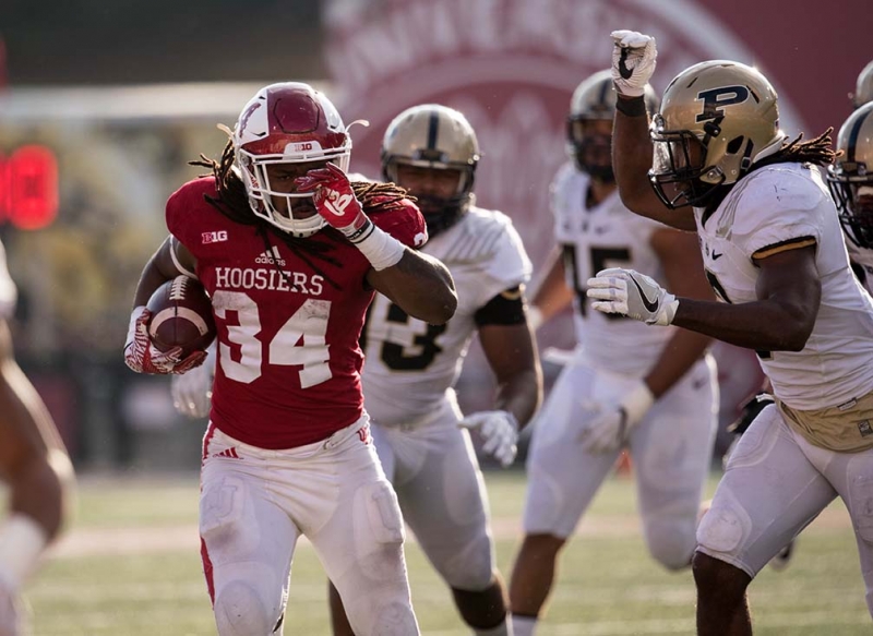 Junior running back Devine Redding runs the ball up the field during the second half against Purdue. IU beat Purdue 26-24 on Saturday, November 26 for the fourth year in a row. Redding, along with junior Marcus Oliver, committed to the NFL Draft on Friday.