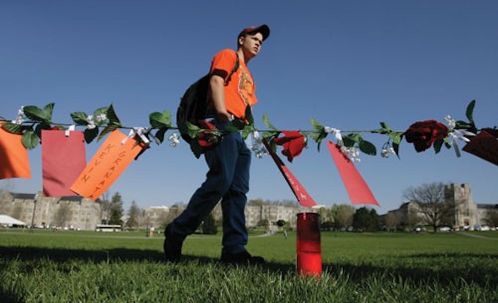 BLACKSBURG, Va. – Virginia Tech students somberly returned to campus Monday, pausing for a moment of silence to remember the classmates murdered a week ago in a gunman’s rampage.\nStudents and faculty gathered about 7:10 a.m. near the dormitory where the first victims, Ryan Clark and Emily Hilscher, were killed. They also gathered on the main campus lawn and held several impromptu memorials as the smell of scented candles filled the morning air.\nIn front of the dorm, a small marching band from Alabama played “America the Beautiful” and carried a banner that read, “Alabama loves VT Hokies. Be strong, press on.”\nBy the time the moment concluded, more than 100 people had gathered to remember the dead. Afterward, a group of students and campus ministers brought 33 white prayer flags – one for each of the dead, including the gunman, Seung-Hui Cho – from the dorm to the school’s War Memorial Chapel. They placed the flags in front of the campus landmark and adorned them with pastel-colored ribbons.\n“You could choose to either be sad, or cheer up a little and continue the regular routine,” said student Juan Carlos Ugarte, 22. “Right now, I think all of us need to cheer up.”\nUgarte, a senior from Bolivia, wrote a message on a yellow ribbon for one of the victims, Reema Samaha. “God will forever be with you. I will always pray for you, and remember.”\nAt 9:45 a.m. – the time of the second shooting – the university planned a moment of silence, with a single bell tolling from the tower of the main administration building. A minute later, the bell will toll 32 times – once for each of Cho’s victims – as 32 white balloons are released from the field below.\nClasses were to resume Monday, one week after Cho killed himself after his murderous rampage.\nUniversity officials were not sure how many students planned to be back Monday. Virginia Tech is allowing students to drop classes without penalty or to accept their current grades if they want to spend the rest of the year at their parents’ homes grieving last week’s campus massacre.\nBut whatever decisions they make academically, many students say they will do their mourning on campus – and that they can’t imagine staying away now.\n“I want to go back to class just to be with the other students. If you just left without going back to classes, you would just go home and keep thinking about it,” said Ryanne Floyd, who returned to campus after spending most of last week with her family and avoiding news coverage of the tragedy. “At least here, being with other students, we can get some kind of closure.”