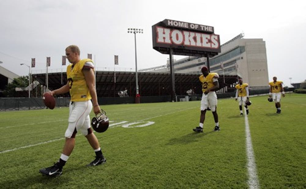 BLACKSBURG, Va. – First came the massacre on campus, leaving 33 dead and a nation horrified. Then came federal dogfighting charges against Michael Vick, Virginia Tech’s favorite son.\nAs Virginia Tech and the Blacksburg community try to put the disturbing offseason in the past, opening day of the football season can’t come soon enough for this engineering school in the Blue Ridge Mountains of western Virginia.\n“I do believe that this school will come back tighter, stronger, more together, more caring, more respectful of each other than ever before,” coach Frank Beamer said. “And there’s probably not a greater place to show it than in a stadium where, if you’re there – the alumni, the students, the fans, whatever – you’re all going in the same direction.\n“People just want something to rally around.”\nThe ninth-ranked Hokies certainly offer that. They have eight starters back from a defense that was No. 1 in the nation last season, a quarterback who guided them to 10 wins last season and no shortage of stars.\n“That’s the one thing I want to make sure that we’re focused on, and that’s that we can be pretty special now if everything falls into place,” defensive coordinator Bud Foster said. “Obviously, you have to stay healthy. There’s a lot of things – breaks that you have to make for yourself – and there’s going to be some adversity and how you fight through those things. Those are all things that characterize a great season.”\nVince Hall and Xavier Adibi might be the best pair of linebackers in the country and lead the disruptive defense that frequently scores more points than it allows. Branden Ore ran for 1,137 yards, scored 17 touchdowns and missed two games.\nThere are question marks on the offensive line and in the kicking game, where Brandon Pace has moved on and Jud Dunlevy is still unproven.\nQuarterback Sean Glennon is also considered a wild card after an up-and-down first season as the starter, which ended with four second-half turnovers in the 31-24 loss to Georgia in the Chick-fil-a Bowl.\n“I’d love to be the guy that people are unsure about and come out and play well,” he said. “Obviously, it takes a whole unit to be good. I’m only one-eleventh of that, but I’m confident in the guys around me getting it done and confident in myself, too.”\nIn the offseason, between visits to a speed coach to help with his mobility and workouts with his teammates, Glennon repeatedly watched the tape of the bowl game.\n“I kind of used that to fuel my fire,” he said.\nNot that all the mistakes were his fault.\nHe fumbled once when he was hit on his blind side, had a tipped pass intercepted and only started trying to force things after Georgia’s second-half comeback had reached full throttle.\n“I feel like our quarterback situation is in good shape,” Beamer said.\nSo does assistant coach Mike O’Cain, who helped restore Glennon’s confidence in the offseason by breaking down the bowl tape and showing Glennon that overall he played pretty well.\n“He’s gotten so much scrutiny from that bowl game that wasn’t his fault. He made one bad play,” O’Cain said.