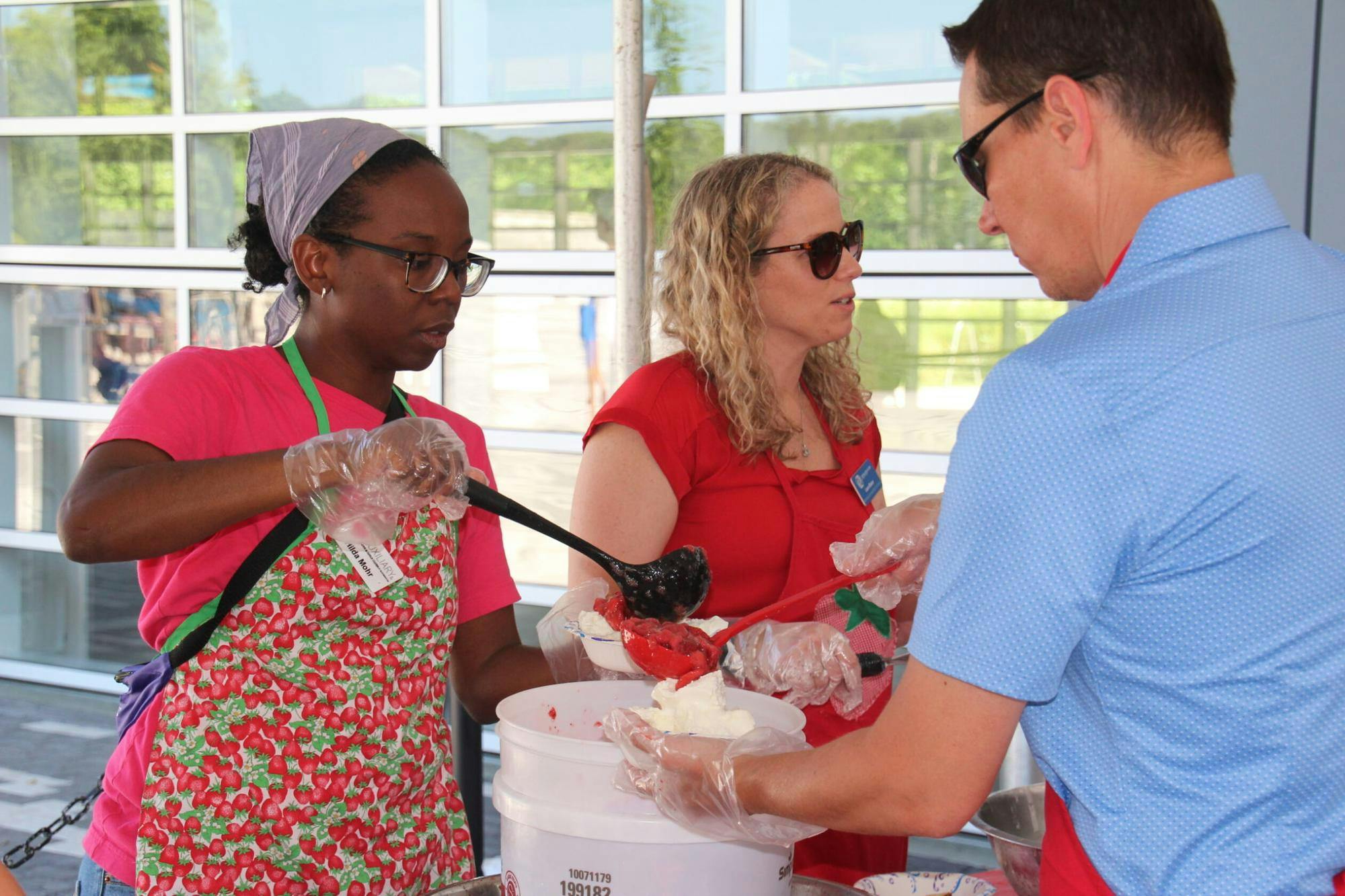 Hilda Mohr (left), member of the Auxiliary to the Boys & Girls Club of Bloomington, prepares strawberry shortcakes at the Annual Strawberry Shortcake Festival on June 13, 2024, at Switchyard Park in Bloomington. The Auxiliary put on the festival and raises funds for the Boys and Girls Club on Bloomington. A woman and child enjoy the photo stand-in board at the Annual Strawberry Shortcake Festival on June 13, 2024, at Switchyard Park in Bloomington. The festival featured other attractions for festival-goers to enjoy, such as live music and the Monroe County Community School Corporation STEM to Them Mobile Lab, which has 3D printers, laser cutters, sewing machines and more for kids to create prototypes with. Youth volunteers make strawberry shortcakes at the Annual Strawberry Shortcake Festival on June 13, 2024, at Switchyard Park in Bloomington. The festival ended at 8 p.m. Two loaves of homemade bread made from scratch by volunteers are seen sliced and prepped for strawberry shortcakes at the Annual Strawberry Shortcake Festival on June 13, 2024, at Switchyard Park in Bloomington. Traditionally, strawberry shortcake is made with biscuits, not pound cake. People order strawberry shortcakes and other snacks at the Annual Strawberry Shortcake Festival on June 13, 2024, at Switchyard Park in Bloomington. The proceeds from the sales went to the Boys & Girls Clubs of Bloomington. Kid Kazooey performs at the Strawberry Shortcake Festival on June 13, 2024, at Switchyard Park in Bloomington. The band released their latest album, "A Bunch of Animals," last December. Festival-goers of all ages enjoy the green space and entertainment at the Annual Strawberry Shortcake Festival on June 13, 2024, at Switchyard Park in Bloomington. Kid Kazooey and Rush Ridge Revival, both local Bloomington bands, performed at the festival. Boys and Girls Club of Bloomington Events & Lemonade Day Director, Laura Blaker, makes strawberry shortcakes at the Annual Strawberry Shortcake Festival on June 13, 2024, at Switchyard Park in Bloomington. The strawberry shortcakes were made with Bruster's ice cream. Attendees stand in line to buy strawberry shortcakes and other snacks at the Annual Strawberry Shortcake Festival on June 13, 2024, at Switchyard Park in Bloomington. The wait was reportedly 45 minutes, however, people were able to place orders at a drive-thru to avoid the line. Rush Ridge Revival performs at the Annual Strawberry Shortcake Festival on June 13, 2024, at Switchyard Park in Bloomington. The local band is named after Rush Ridge Road in Monroe County. A puppy enjoys cools off with cold water at the Annual Strawberry Shortcake Festival on June 13, 2024, at Switchyard Park in Bloomington. The 65-acre park has two dogs parks, one for little dogs and one for big dogs.