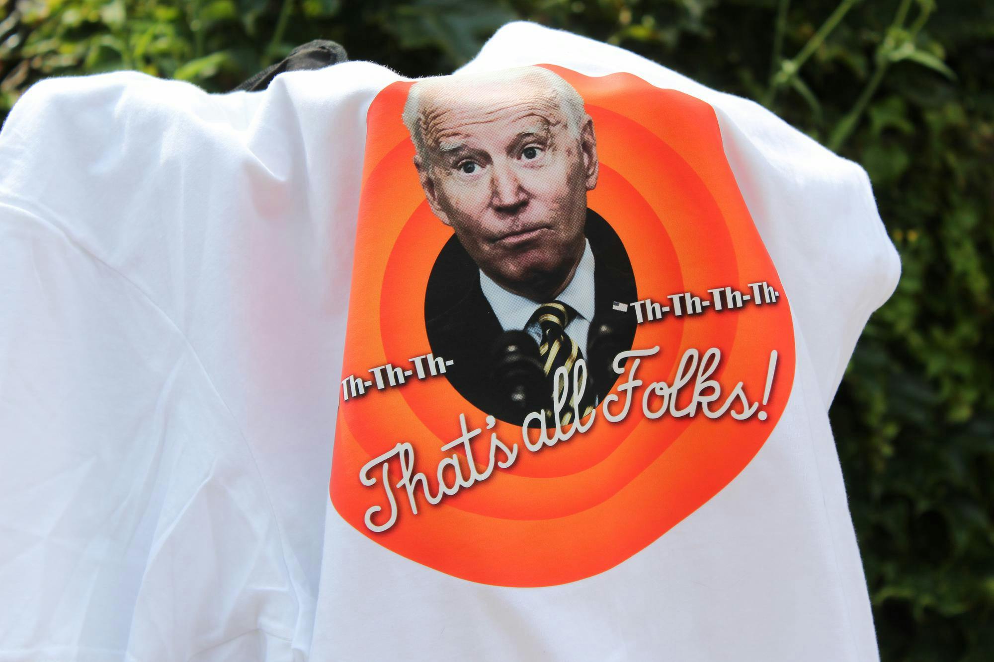 Police officers ride bikes past the Republican National Convention entrance on July 15, 2024, in Milwaukee. Different groups of officers on bicycles rode around the convention area all day long. A Republican woman is interviewed outside the Republican National Convention on July 15, 2024, in Milwaukee. Carol Cassidy traveled from her home in El Paso to attend the convention. A shirt with President Joe Biden's face on it and "Th-Th-Th-Th-Th-Th-Th-That's all Folks" written on it is hangs off the side of a wagon July 15, 2024, outside the Republican National Convention in Milwaukee. Multiple shirts were sold outside the entrance to the convention. Balloons with "Love them Both" written on them float July 15, 2024, outside the Republican National Convention in Milwaukee. Anti-abortion protesters were gathered outside the entrance to the convention around 1:30 p.m. A poster with "Trump for Israel" and "Biden for Hamas" written on it is sits on the ground July 15, 2024, outside the Republican National Convention in Milwaukee. A pro-Palestine protest marched outside the convention around 1:45 p.m. A drawing of Donald Trump is seen July 15, 2024, at a Starbucks in Milwaukee. The drawing was done by Larry Leake, a local Milwaukee artist.