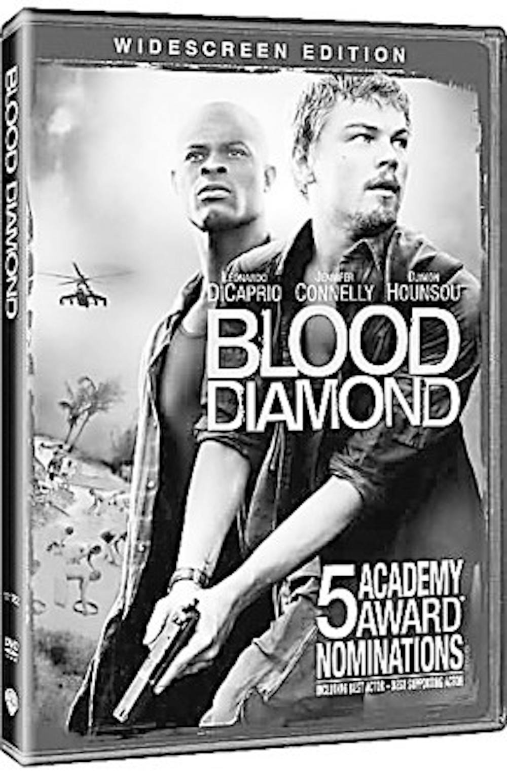 "Blood Diamond" is the kind of film that leaves me with mixed emotions. Upon initial theatrical viewing last December, I was mostly unimpressed, save for some masterfully done action sequences. After rewatching it on DVD, I'm still impressed with all the action, but at times the subject matter comes off as exploitative of Africa's current conditions, while the heavy message that we should avoid buying diamonds from conflict zones is likely to fall on deaf ears.\n"Diamond" brings together Leonardo DiCaprio and Djimon Hounsou in the anarchic Sierra Leone of 1999. Hounsou, as Solomon Vandy, watches in horror as rebels invade his village and separate him from his family shortly after the films opens; DiCaprio, as Danny Archer, is an ex-mercenary turned diamond smuggler who's merely out to make a buck and escape a continent he has deemed "godforsaken." These men are brought together while in prison and Archer, seeing the opportunity to use Vandy to locate a rare diamond, makes the bold promise he can reunite Vandy with his lost family. The greatest question Vandy must ask himself is: Can this man really be trusted?\nDid DiCaprio and Hounsou really deserve their Oscar nominations for this film? Honestly, no. DiCaprio was leaps and bounds better in "The Departed" -- a film where he actually maintained his accent; Hounsou, who is indeed a very talented actor, screams practically 75 percent of his lines and it gets annoying fast. I also finally realized that director Edward Zwick has a thing for making films where white men are placed within various ethnic groups only to become either their savior, voice of reason or both. Look at "Glory," "The Last Samurai" and now "Blood Diamond," and tell me you don't notice a trend. \nSingle and double-disc editions exist of "Diamond." The single comes with Zwick's insightful commentary as the only extra. The good thing about his commentary tracks is he tries to cram in as much information as possible. The double-disc includes the commentary along with two disposable interviews with DiCaprio and Connelly, an interesting segment on the film's epic "Siege of Freetown" sequence and the music video for Nas' "Shine on 'Em." \nThe big supplement though is the 50-minute documentary, "Blood on the Stone." What follows is the lengthy journey of a diamond from the African mines all the way to its European buyer and into the shop window. The entire process is fascinating, although one viewing is sufficient.\nUltimately, "Blood Diamond" is a passable drama with strong action scenes that could've been trimmed down at least a half-hour. The end message is make sure the next diamond you purchase comes from a conflict-free zone. Yet, when the movie focuses largely on how diamonds from these zones are smuggled across borders only to be mixed in with untainted ones, is the message really all that successful?