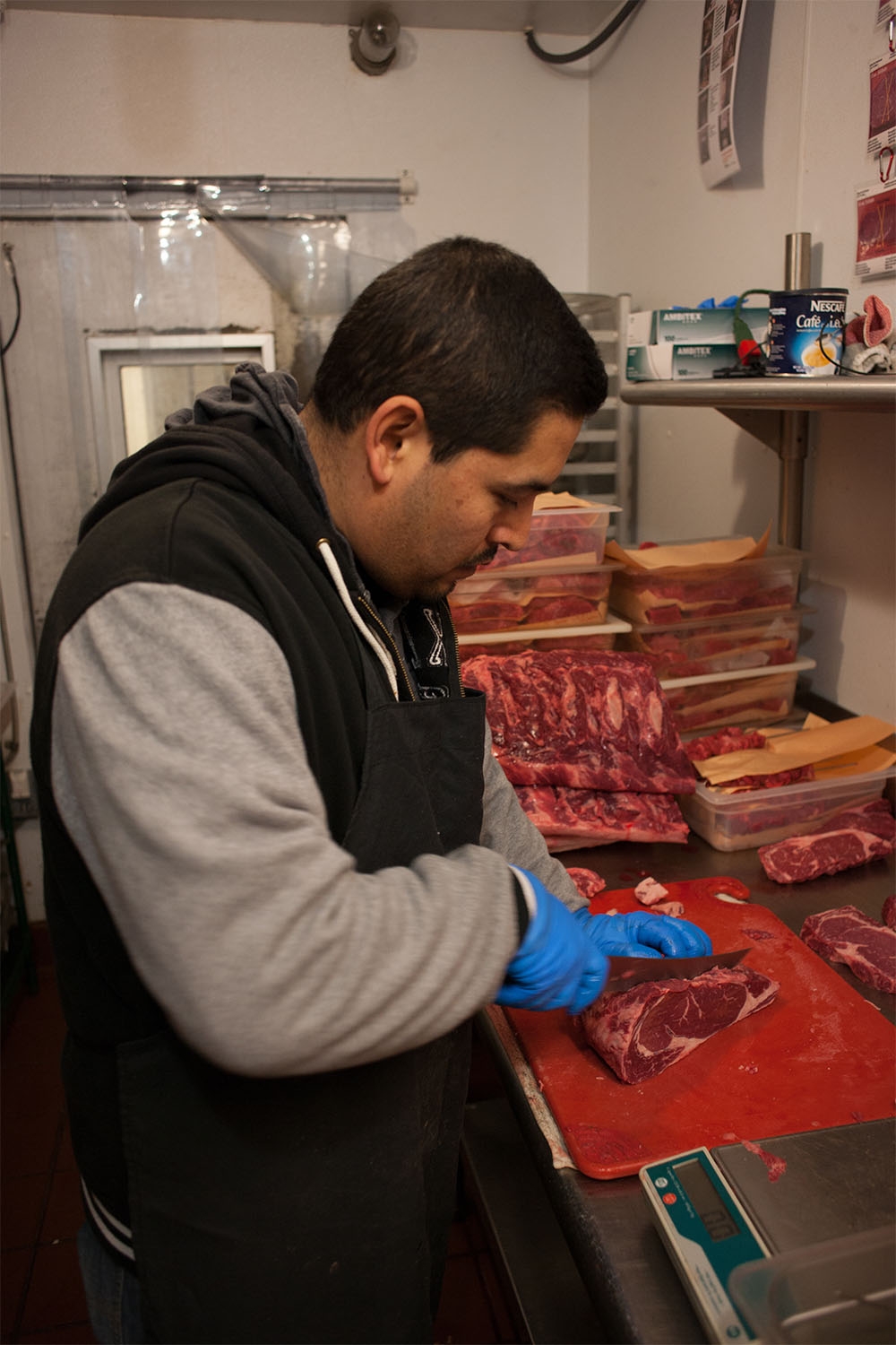 The most difficult part of transitioning to the new job was dealing with the temperature in the meat room, which is always set at 38 degrees to keep the meat fresh and high quality, Sotelo said. Sometimes he works there for up to eight hours.