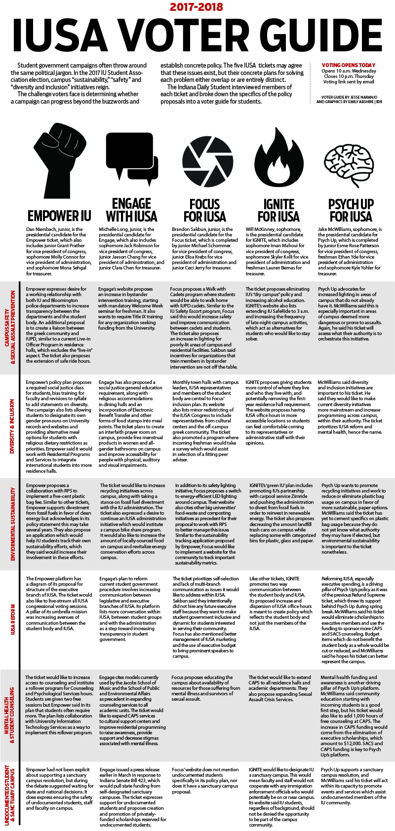 IUSA Voter Guide Voting opens 10 a.m. Wednesday and closes 10 p.m. Thursday Get stories like this in your inbox Subscribe