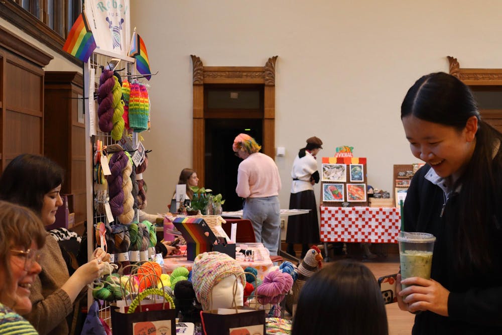 Harry Styles music played through a speaker as students perused the vendors, grabbing free snacks at the door. At one vendor, an artist crocheted while selling crochet hats and tops, and at another, attendees sat and posed for a $5, five-minute, hand-drawn portrait.