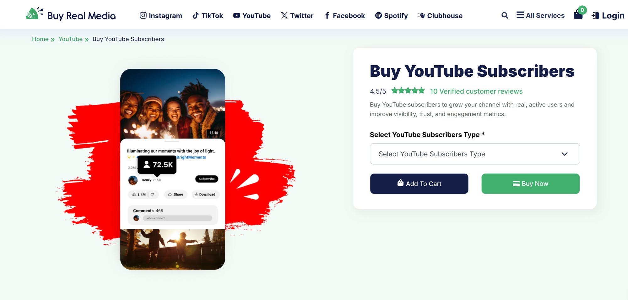 You can buy more than just subscribers here. Media Mister also sells YouTube views, likes, comments, watch time hours, and shares. This makes it a one-stop shop for growing your YouTube channels across different metrics.