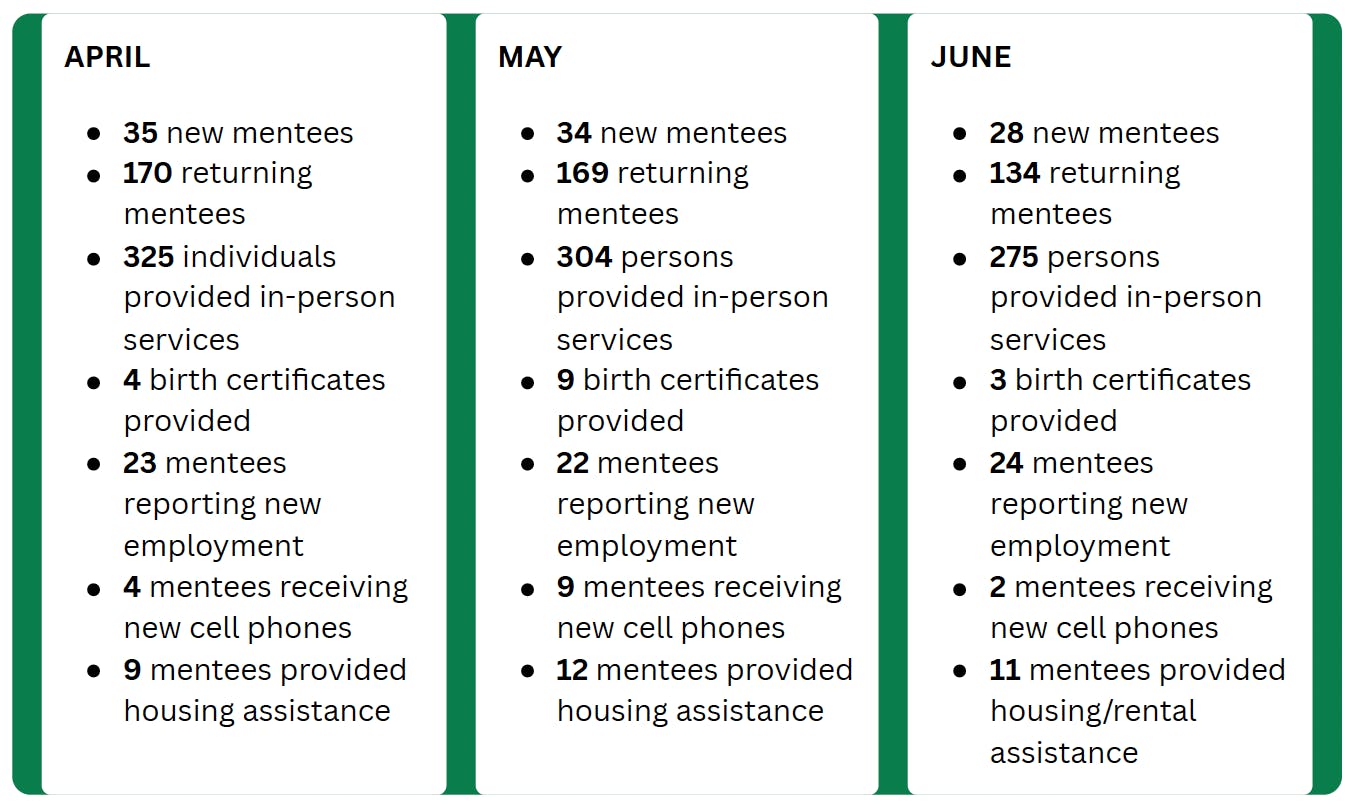 With your help, in the last three months, New Leaf New Life has also provided for: