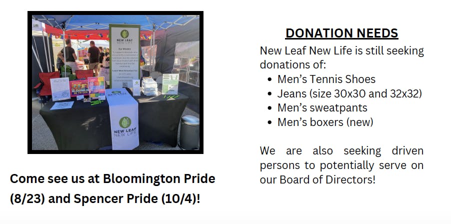 Summer has been busy and delivered blessings for New Leaf New Life. Recently, NLNL was honored to be chosen as recipient for the Bloomington Downtown Outreach grant, which will fund the creation of a part-time position to administer the Read to Me program. The Read to Me program, coordinated in partnership with the Monroe County Public Library, allows incarcerated parents to record themselves reading to their children. The children are provided with books and recordings so that they can read along with their parent, and hear their parent’s voice, and maintain a connection to their loved one who cannot be with them at this time.