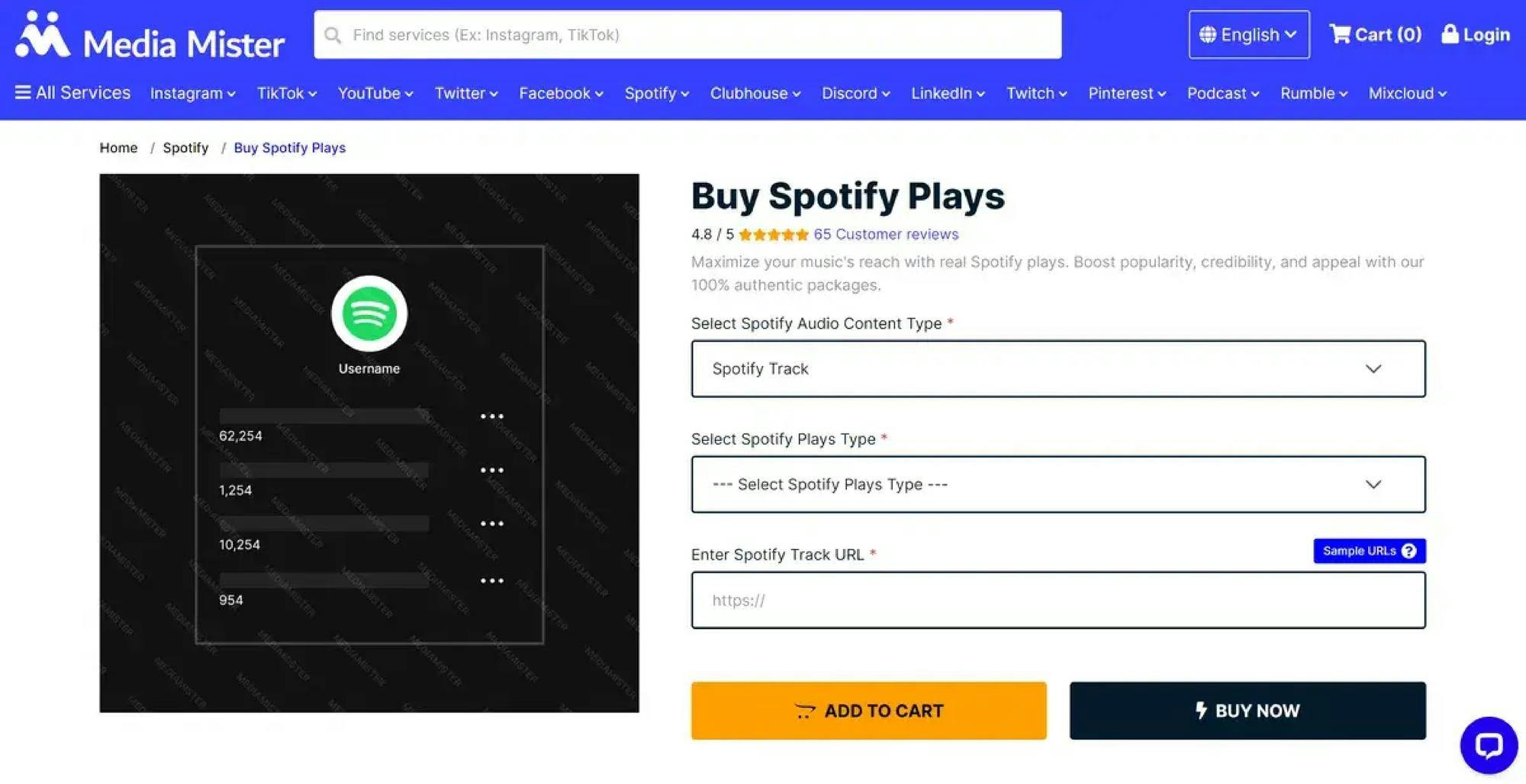 You can buy real Spotify plays from Media Mister with plans built for artists who want high quality streams with clear control and safety. The company has run since 2012 and supports services for more than 60 platforms worldwide. On the Spotify plays page, you can pick four core play types: track plays, album plays, playlist plays, and podcast plays.