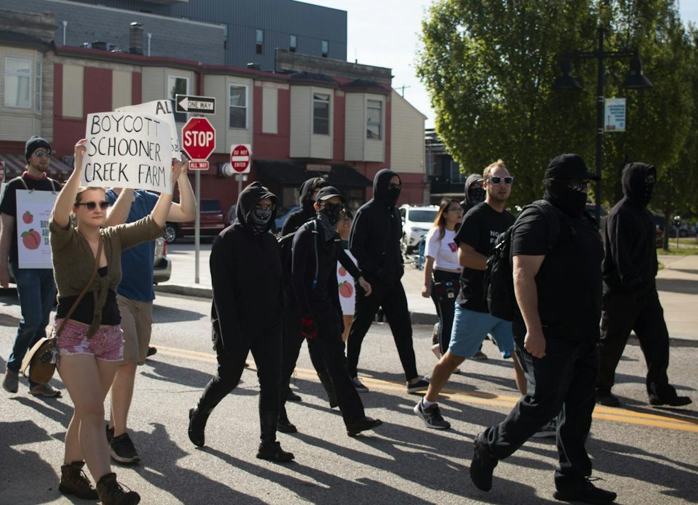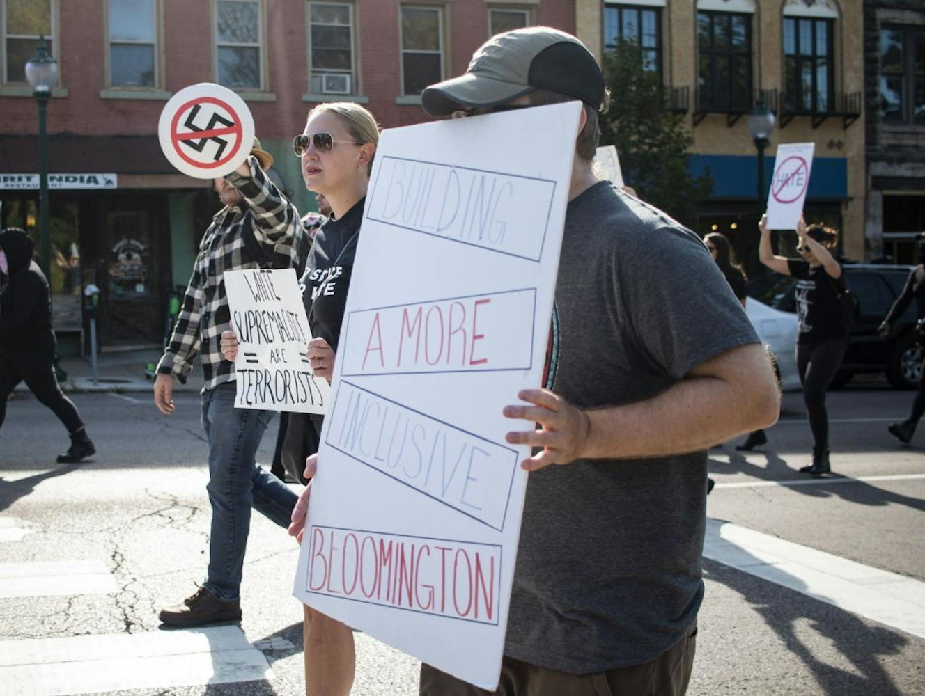 GALLERY: Antifa and No Space for Hate protest Bloomington Community Farmers' Market