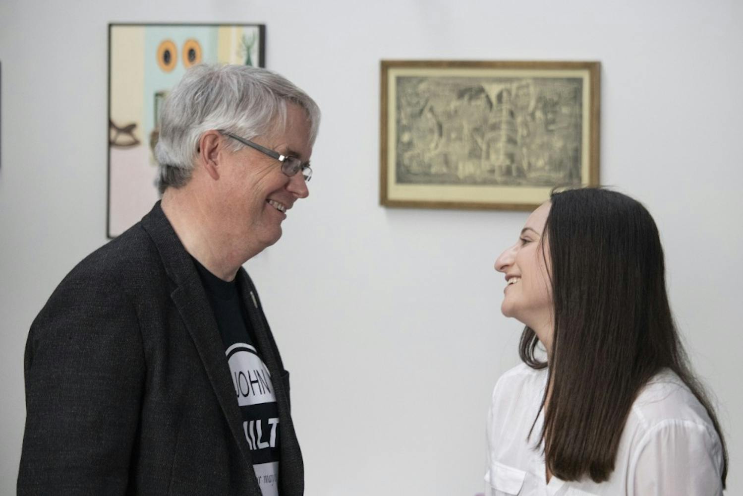 People celebrated Democratic victories and recognized losses in the Bloomington municipal primary election Tuesday night at an event organized by Mayor John Hamilton's campaign and the Monroe County Democratic Party. Voting on election day was open from 6 a.m. to 6 p.m. Candidates came to the watch party at the Dimension Mill around 6:30 p.m.