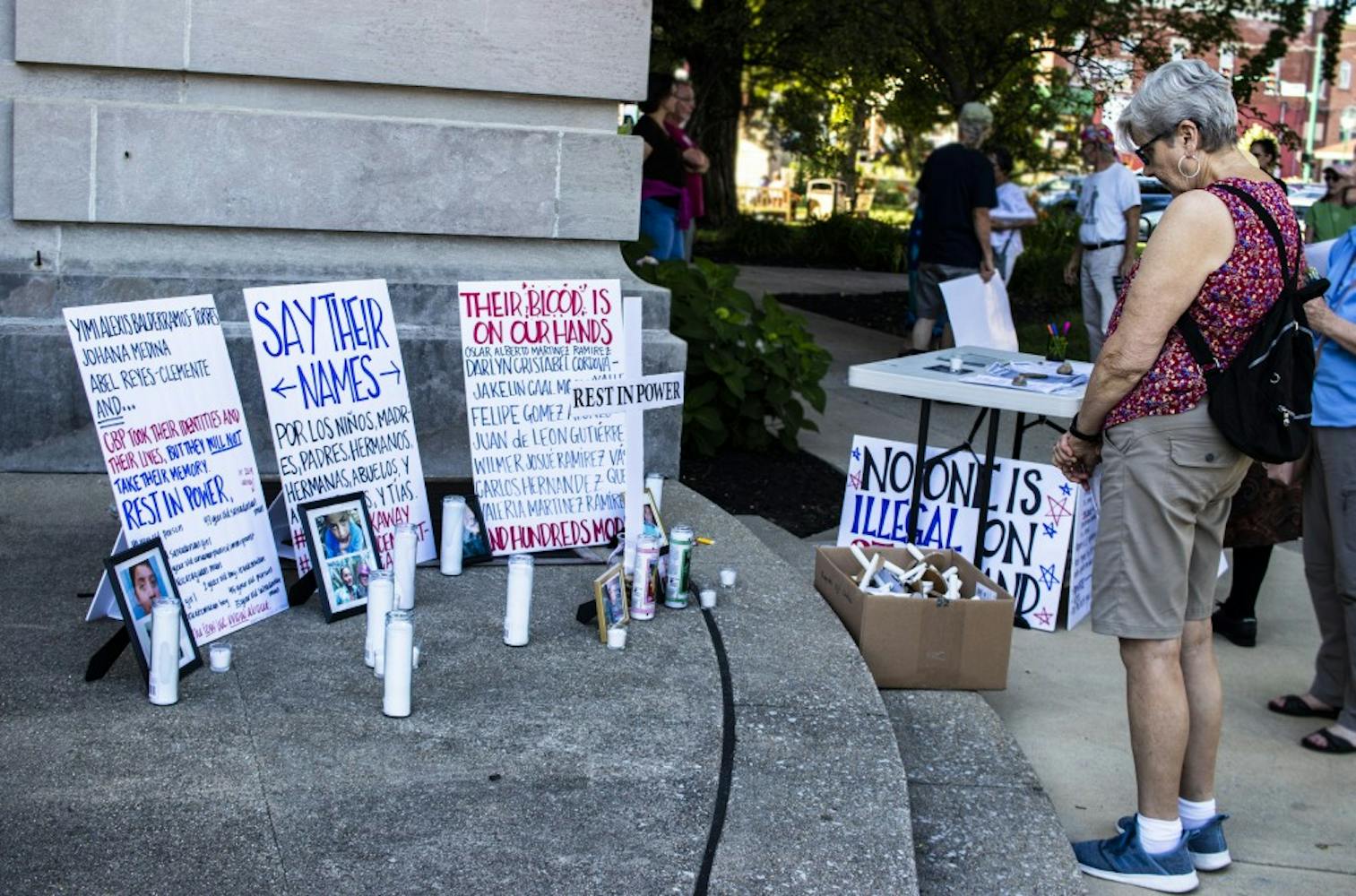 People gathered together to bring attention to the topic of human detention centers in the United States during "Lights for Liberty: A Vigil to End Human Detention Camps" on July 12 in front of the Monroe County Courthouse. "Lights for Liberty" took place at 9 p.m. around the world. The Bloomington event began at 7 p.m. with the candlelight vigil starting at 9 p.m. Community leaders, students, an immigration lawyer and more spoke in support of ending detention centers.