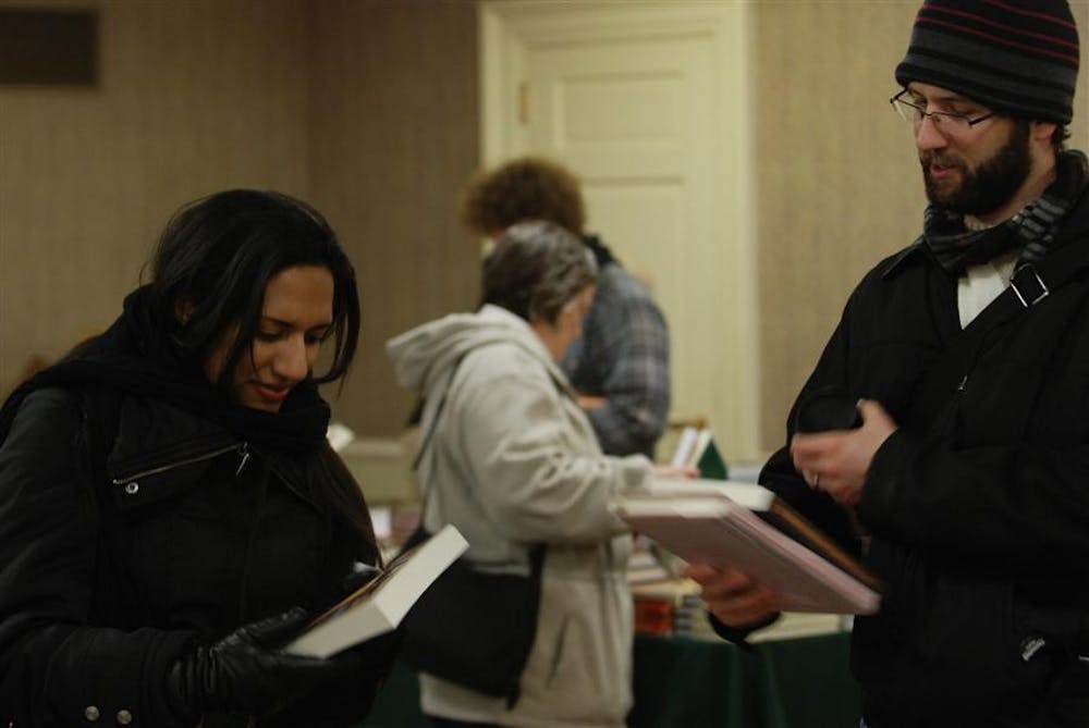 Chris Roush and Anjali Vithayaphal shop Wednesday at the Holiday Book Sale on in the Memorial Union. The book sale was conducted by the University Press and lasted six hours.