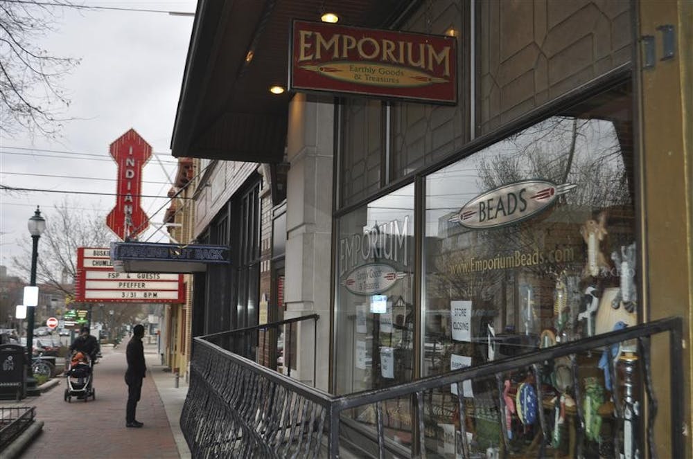 Signs declaring "store closing" and "everything on sale" hang in the window of Emporium Earthly Goods and Treasures on Kirkwood Avenue. Sara Singh