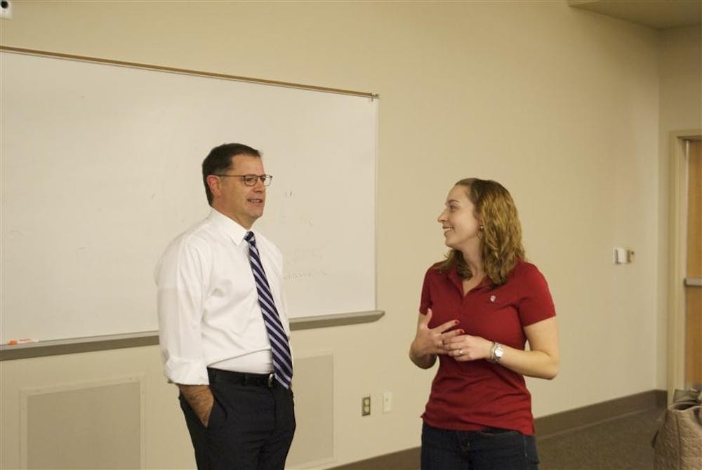 John Fernandez, a former Bloomington mayor and U.S. Commerce Department official with Jenna Morrison Civitello, the Assistant Direcctor of Alumni Relations and Development of SPEA. He is back at the Indiana University campus in Bloomington as part of the 40th anniversary celebration at the School of Public and Environmental Affairs.