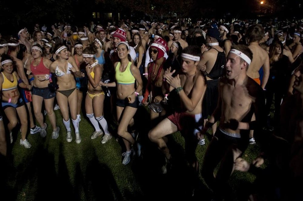 Runners warm up for the Nearly Naked Mile Oct. 12. Participants took off most of their clothing and donated it to the United Way of Monroe County. Peter Stevenson