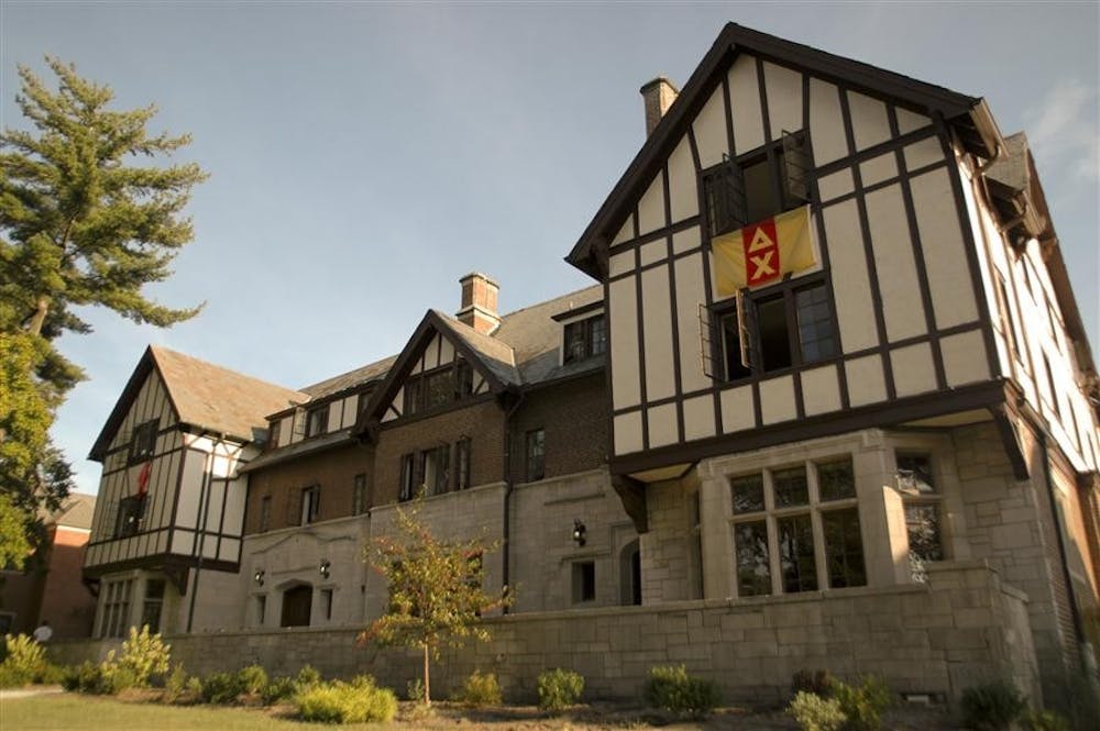 A banner displaying the Delta Chi greek letters hangs from an open window Wednesday at the fraternity's new home located on East Third Street. Delta Chi leased the house for the 2010-2011 school year from the former inhabitants, Alpha Tau Omega fraternity. ATO lost several members after facing disciplinary charges from the university in the spring semester of last year. Due to the low levels of membership ATO was unable to fill the house to its capacity and thus were not able to remain living there.