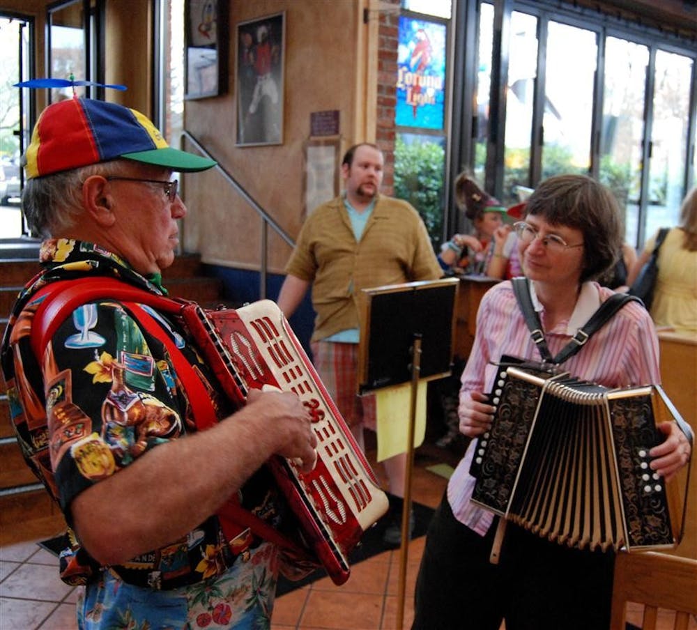 Adman Ziepolt and Ilze Akerbergs play their accordions Monday night at Yogi's Bar and Grill. Dyngus Day is a Polish-American holiday that celebrates Easter Monday.