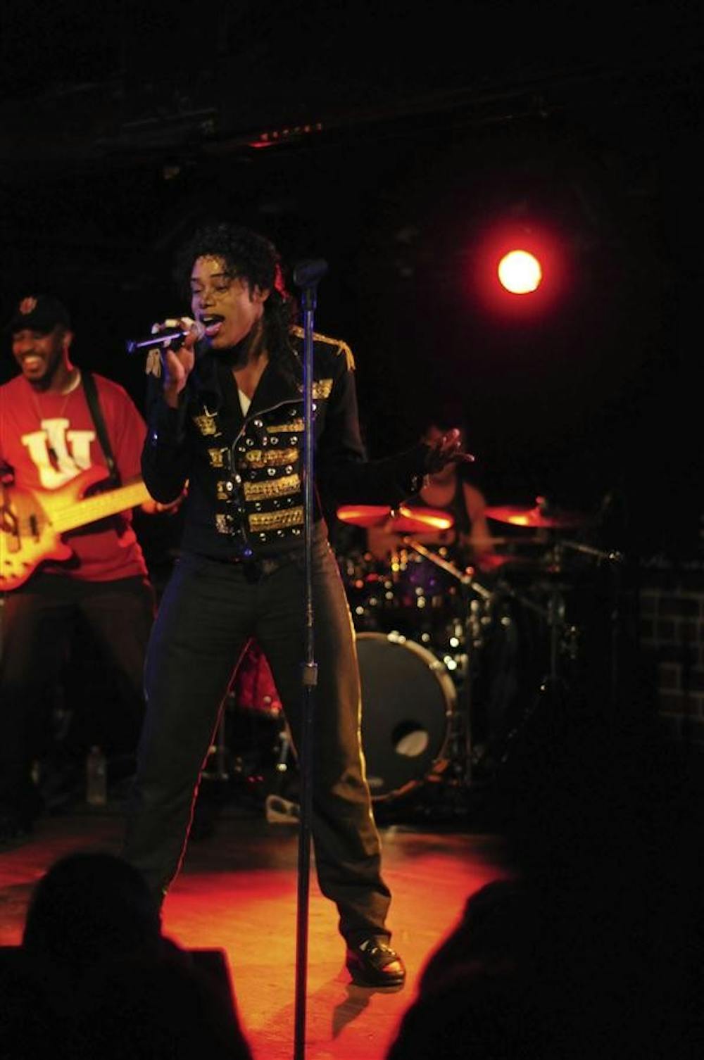Taalib York, a lead vocalist for the Micheal Jackson tribute band "Who's Bad," performs the Michael Jackson hit "Smooth Criminal" on Saturday at the Bluebird Nightclub. Courtney Deckard