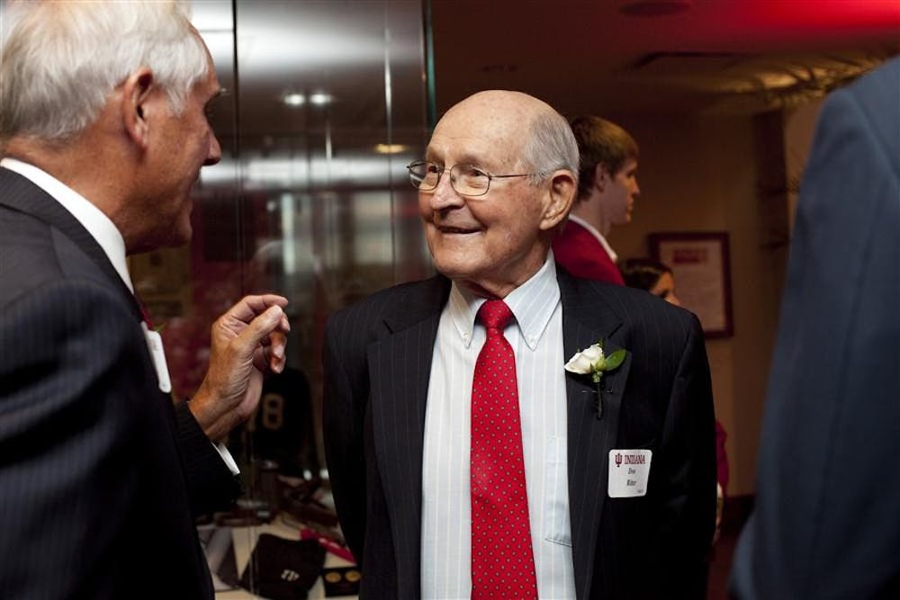 Don Ritter talks with former athletic director Clarence Doninger on Friday in the Henke Hall of Champions. Both men were inducted into the IU Hall of Fame as part of the 2011 class. Nicholas Demille
