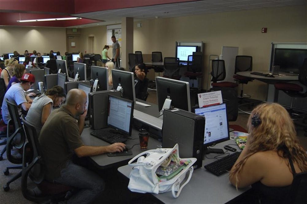STC Computer Lab, Indiana Memorial Union. The lab allows for individual use and also has group stations for class projects.