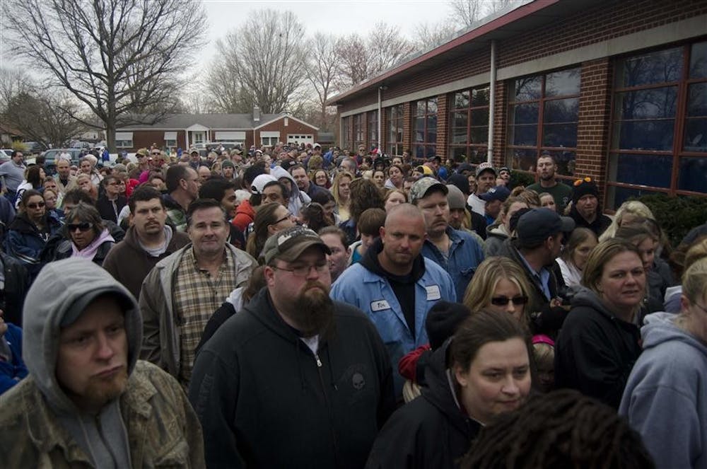 Family members wait to pick up children Friday outside of Martinsville West Middle School. Rabi Abonour