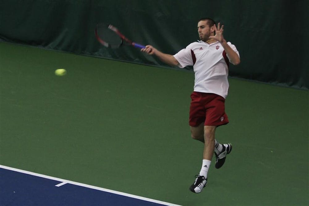 Junior Isade Juneau returns the ball during IU's 7-0 win against Butler on Saturday at the IU Tennis Center. Mark Felix