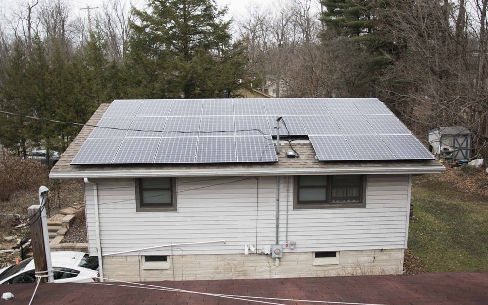 The solar panels on Jim Cripe's roof collect enough energy when it's sunny to power his house and part of his neighbor's. Cripe is planning on attatching one more panel to his roof as soon as the weather clears. Rose Bythrow and Rose Bythrow and Rose Bythrow
