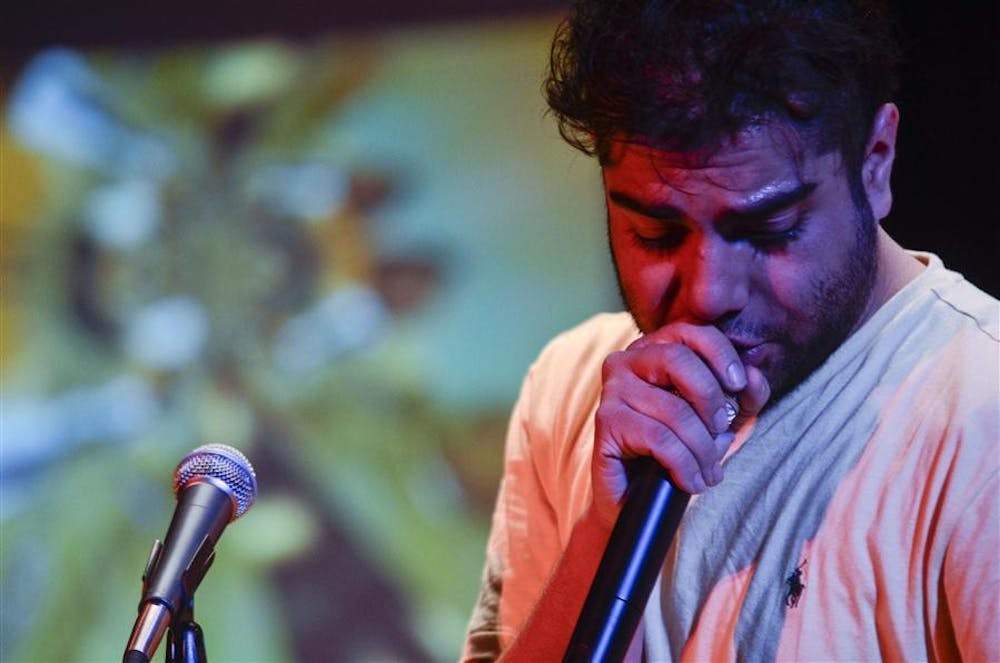 Himanshu Suri of of indie rap group Das Racist performs Thursday in Alumni Hall. The group was brought in by Union Board for the Canvas premeire party, Union Board's creative arts magazine.