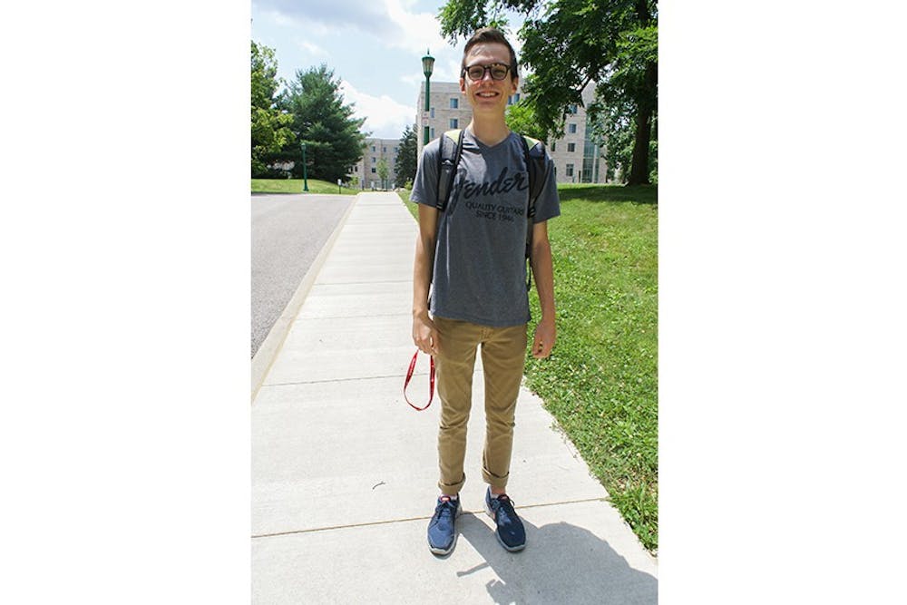 Anthony Constantini stands beside the School of Education. Constantini is a student at Arizona State University taking summer classes at IU.