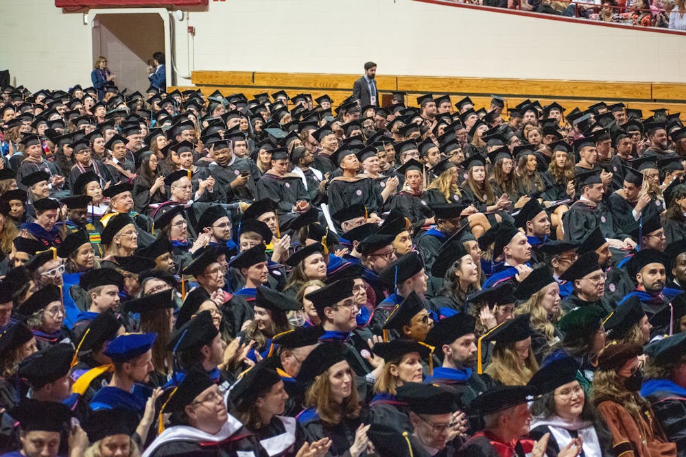 IU graduates and faculty listen to speeches during the graduate commencement ceremony May 3, 2024, at Skjodt Assembly Hall in Bloomington. Both IU President Pamela Whitten and IU Provost Rahul Shrivastav delivered speeches during last year's commencement.