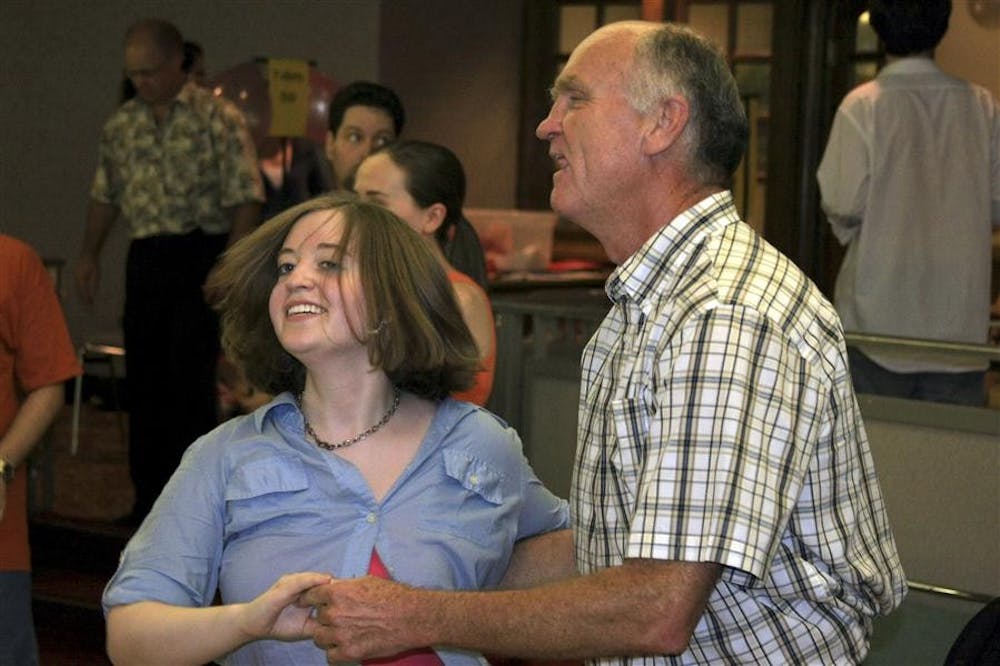 Sarah Wills dances with Randy Hammond at the Swing Dance Club's first meeting Monday in the Indiana Memorial Union. The first meeting went over basic West Coast Swing steps.