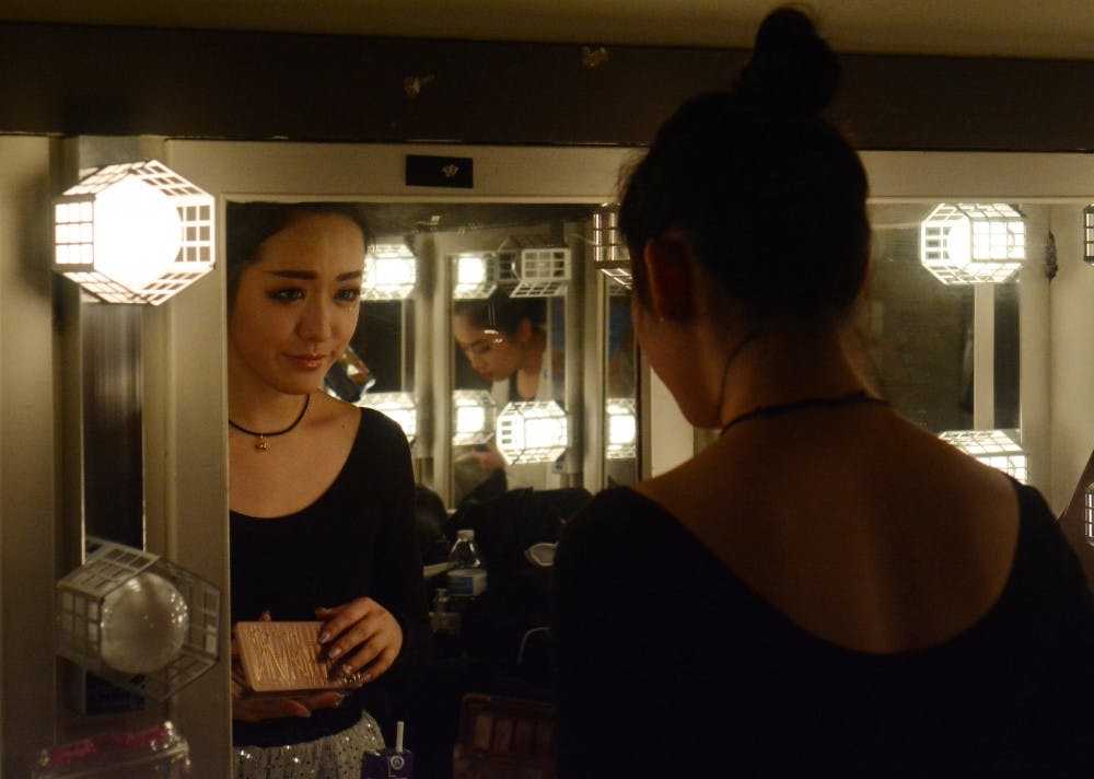 Emily Ding, junior at Indiana University and also a member of Devil Force Dancing and entertainment club, perfects her makeup before her performance during annual Chinese Spring Festival Gala held at the Indiana University auditorium on Friday at Bloomington, Ind. Ding and her fellow dancers started prepare since 11 a.m. Ding said she had little time to eat but she enjoyed the time spent with her club members.