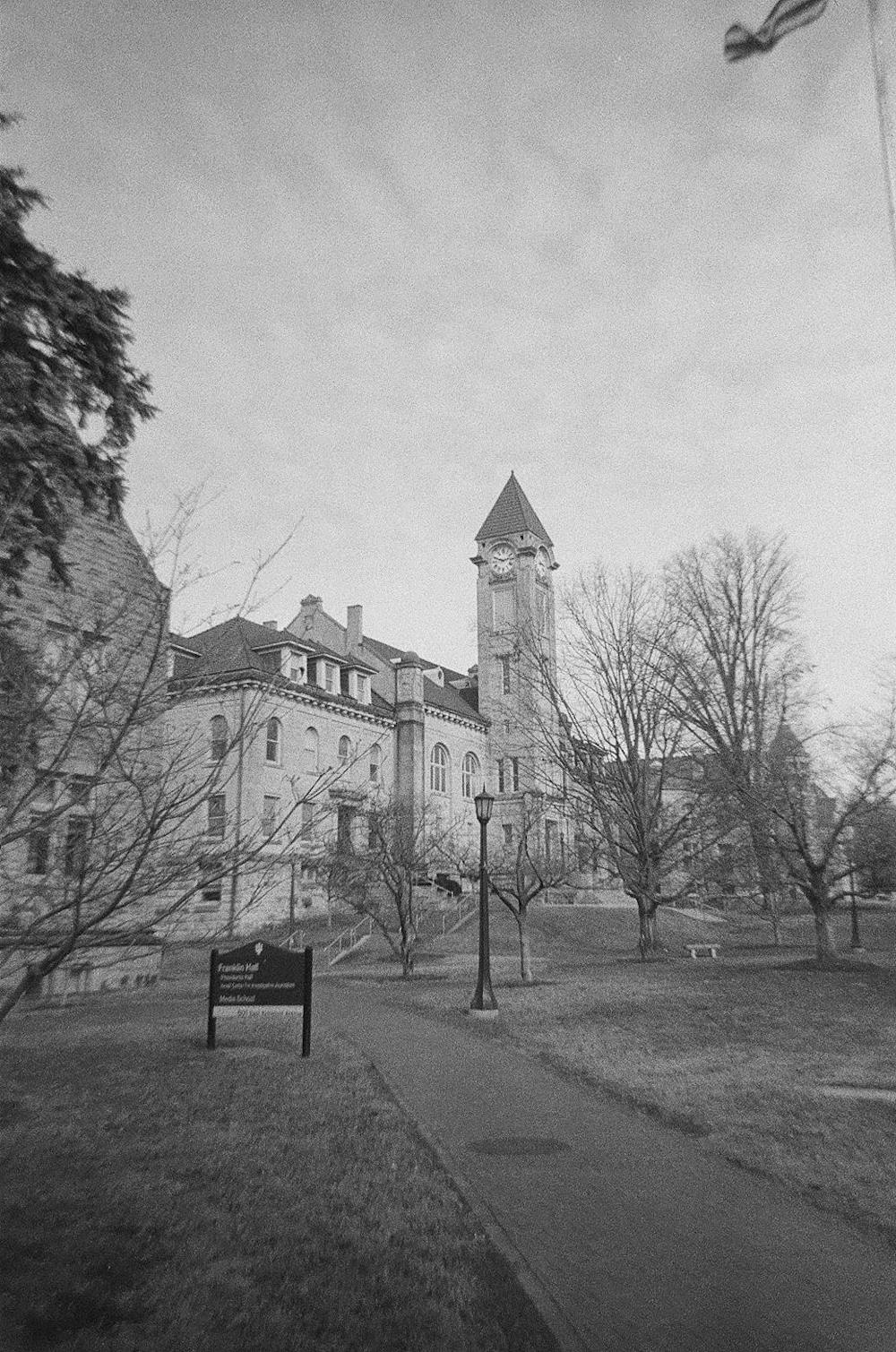 The Frances Morgan Swain Student Building is pictured Feb. 21, 2025, on Indiana University's campus. Bloomington's historic buildings have been a great place for columnist Sophie Albert to practice her film photography.