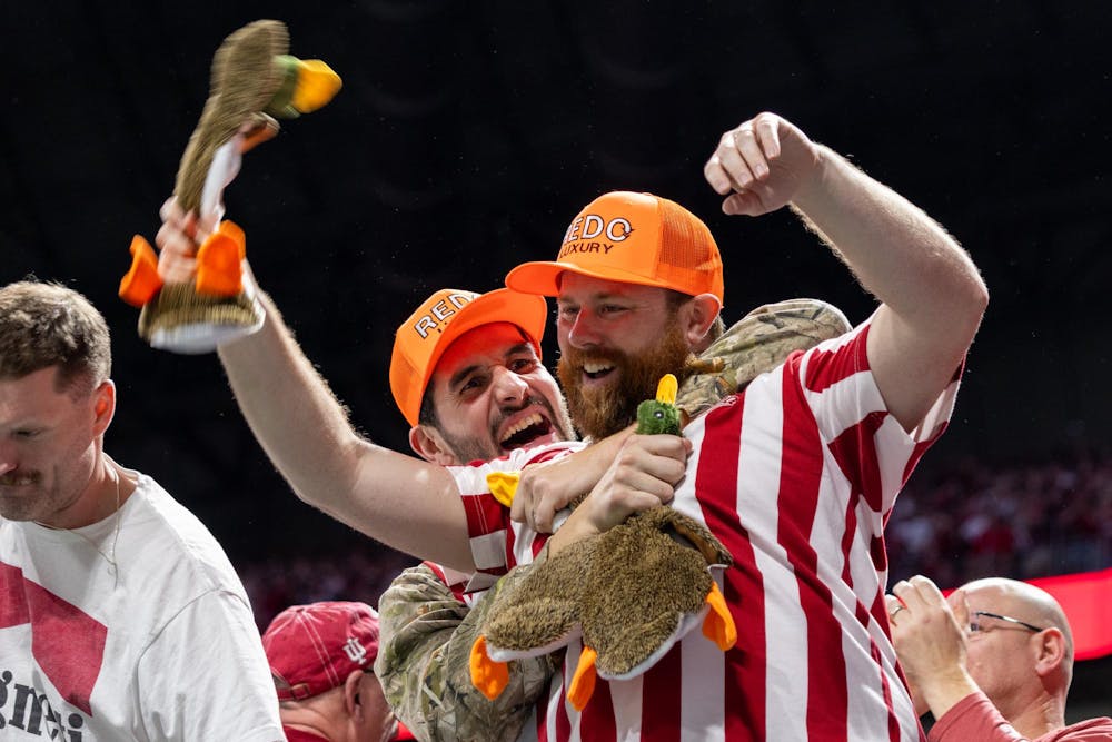 Indiana fans cheer on the Hoosiers during the CFP Semifinal game against Oregon on Jan. 9, 2026, at Mercedes-Benz Stadium in Atlanta. The stadium was packed with Hoosier fans.