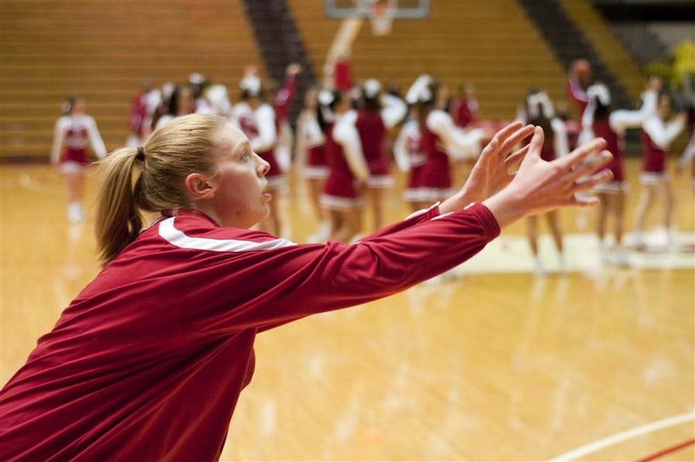 Freshman forward Aulani Sinclair waits for a pass during warmups before IU's game against Wisconsin Thursday at Assembly Hall.