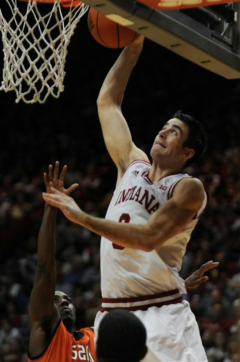 IU guard Will Sheehey attempts to dunk Thursday against Sam Houston State at Assembly Hall. Mark Felix