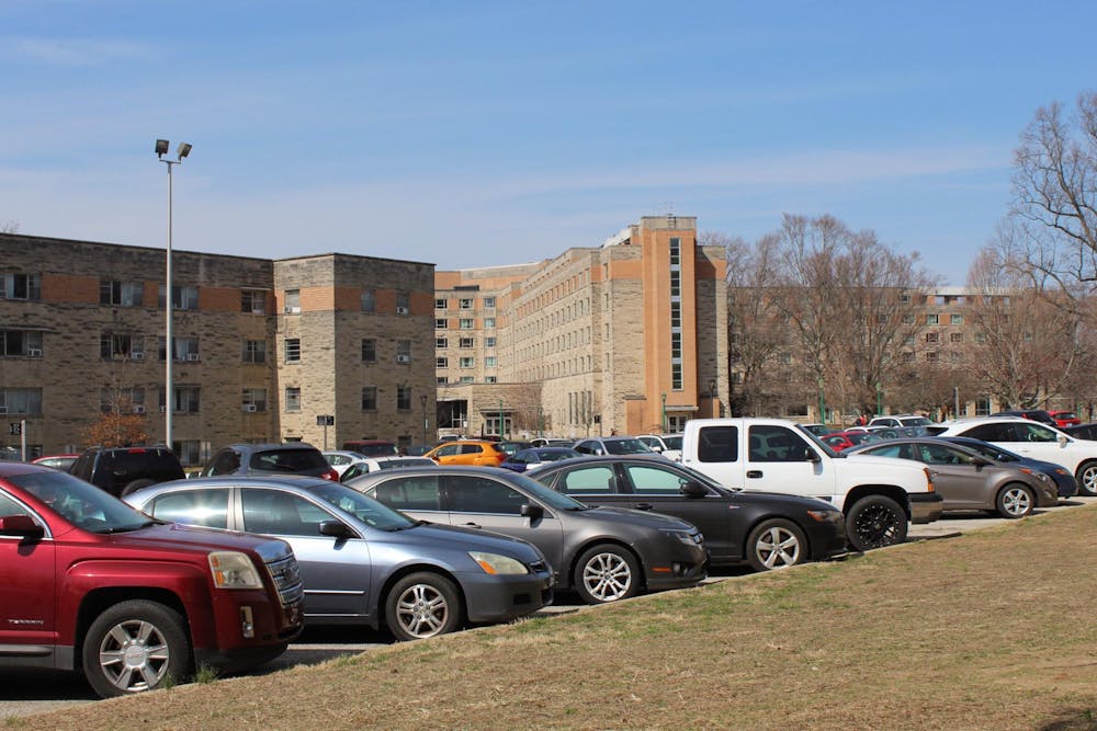 Students' cars line up in the parking lot March 1, 2023, outside Forest Quad in Bloomington. Forest Dining Hall provides options for various diets. Molly Gregory