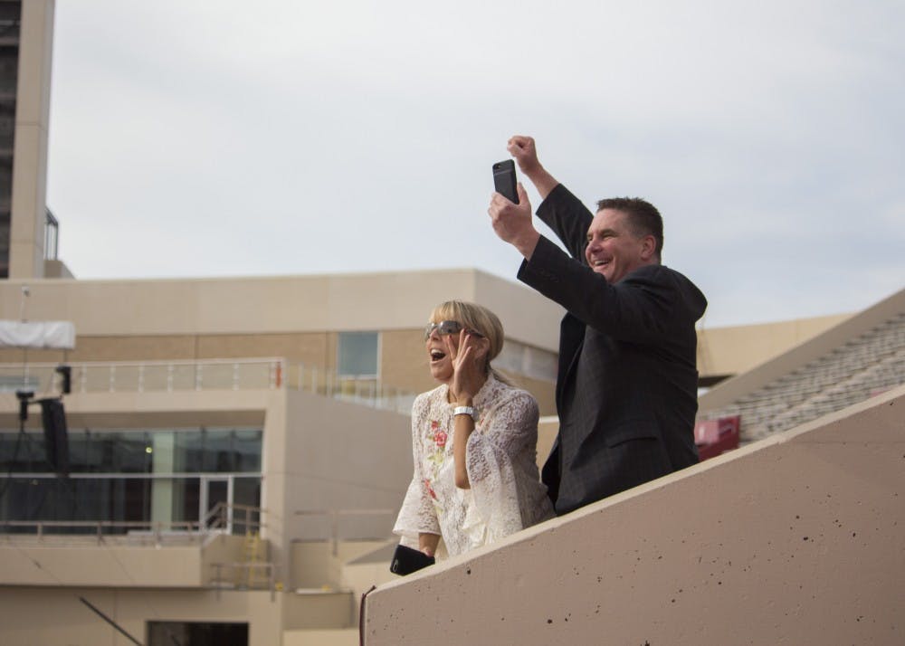 Audience members cheer before the start of the 2018 spring undergraduate ceremony Saturday, May 5, at Memorial Stadium. Matt Begala