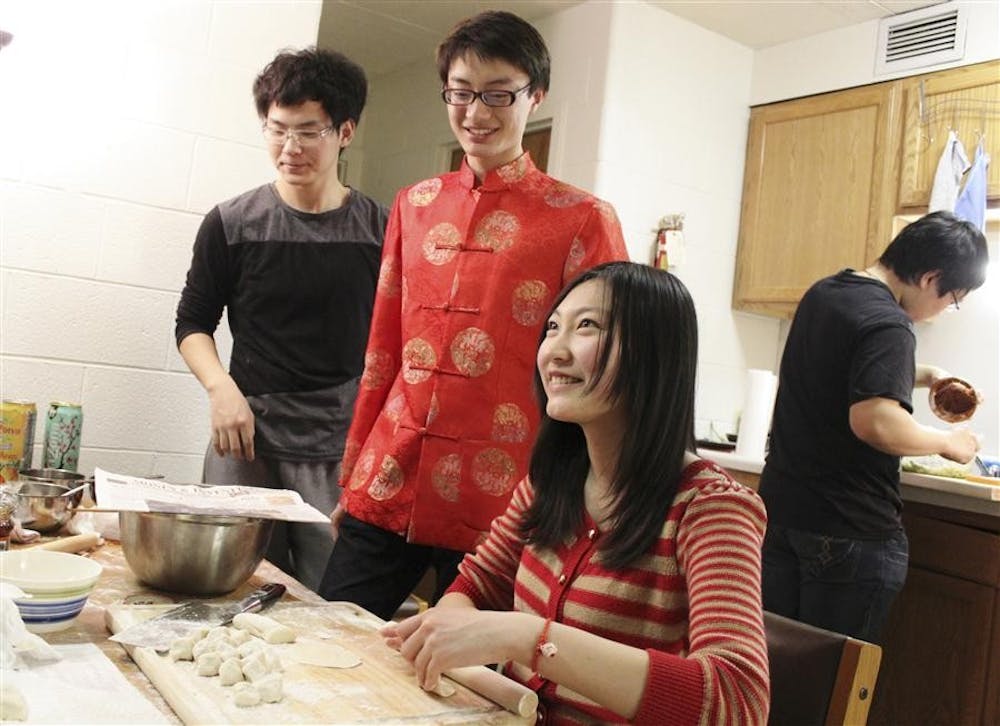 Freshman Qi An and her friends prepare the dough for traditional Chinese dumplings in celebration of Spring Festival Saturday night. This is the first year An experienced the Chinese New Year's holiday away from her family in China.
