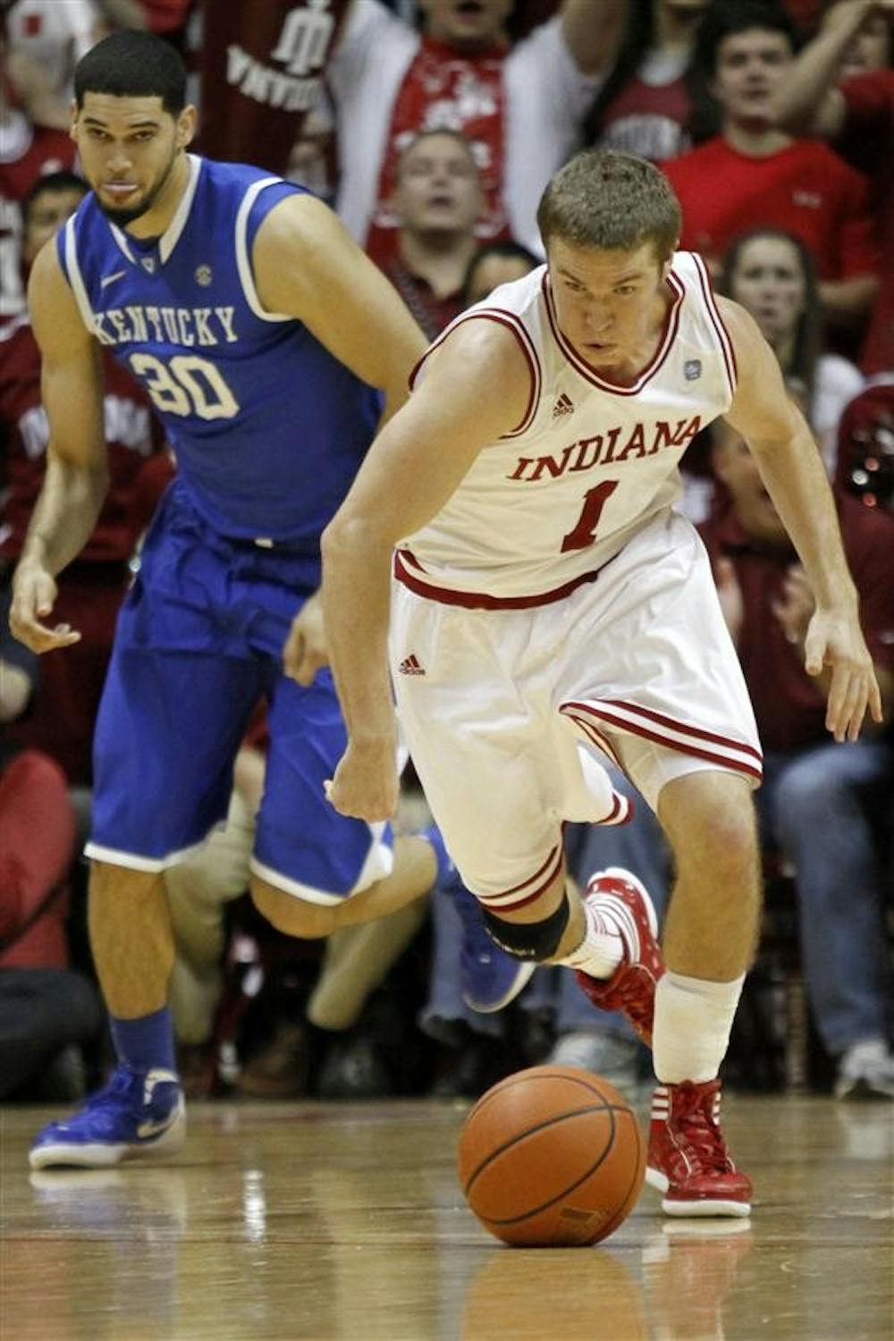 IU point guard Jordan Hulls drives down the court against No. 1 Kentucky on Saturday at Assembly Hall. Mark Felix