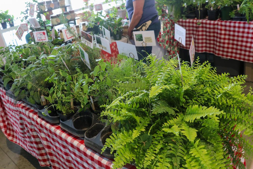 Ferns and herbs are seen at the Monroe County Master Gardeners Association Garden Fair on April 11, 2026, at Switchyard Park in Bloomington. The vendor was Bloomers Greenhouse. Alissa Angel