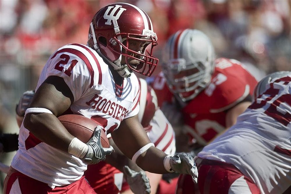 Senior running back Trea Burgess looks for a gap in the Ohio State defense during IU's 38-10 loss to the Buckeyes on Saturday in Columbus, Ohio. Peter Stevenson