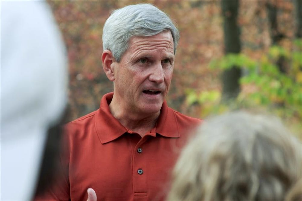 Congressman Baron Hill D-9th speaks to students about the importance of voting in the upcoming mid-term elections Monday near Woodburn Hall. After Hill's talk students were encouraged to take a voting shuttle to the Curry Building in order to vote early.
