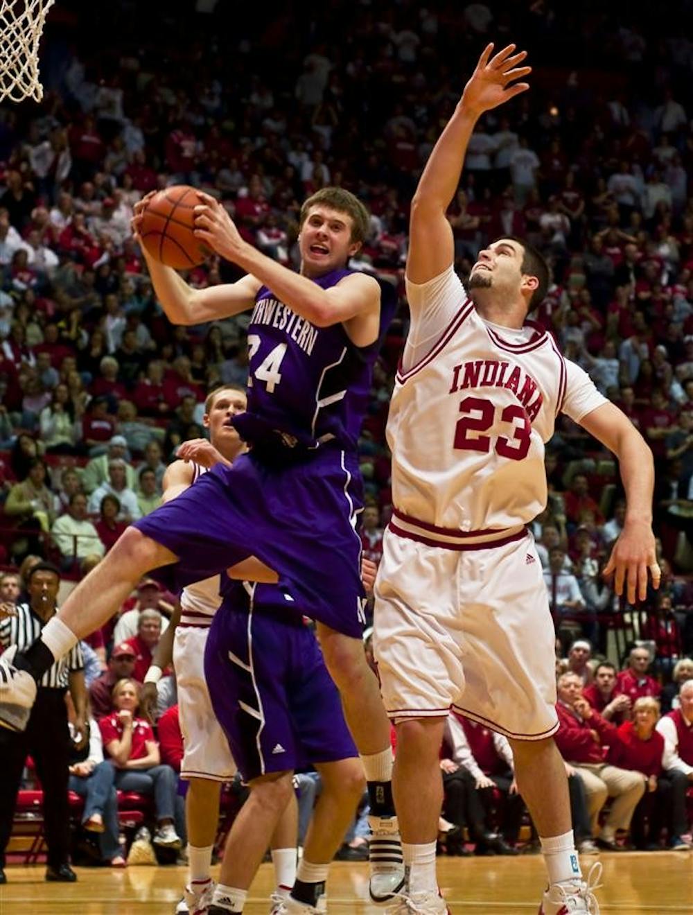 Northwestern's John Shurna grabs a rebound during IU's 88-80 win against the Wildcats March 6 at Assembly Hall. Peter Stevenson
