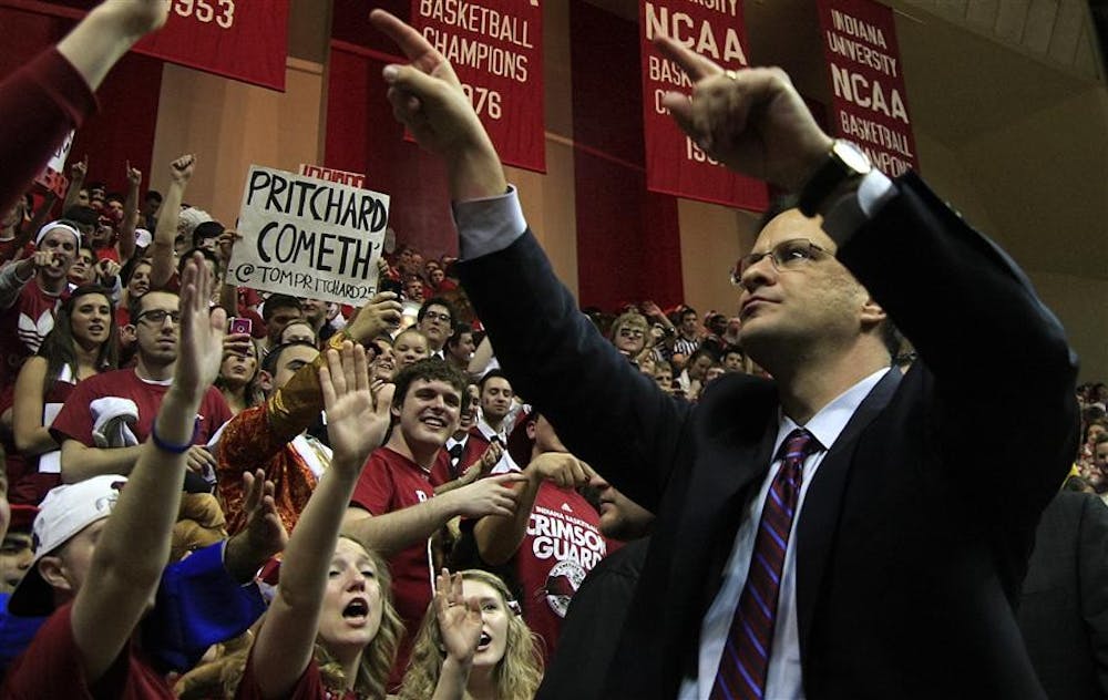 Coach Tom Crean greets students after a 70-55 win against Michigan State on Tuesday at Assembly Hall. Mark Felix