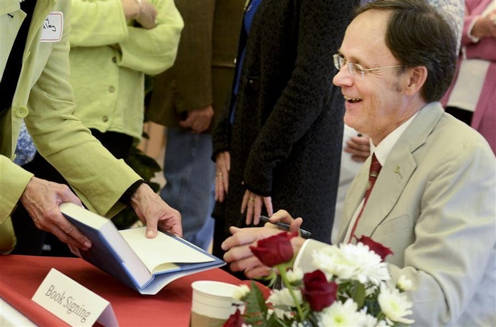 Author James Capshew signs copies of his book, "Herman B Wells: The Promise of the American University", on Wednesday at the Herman B Wells Library. The book details both Well's early life as well as his decades spent at IU.