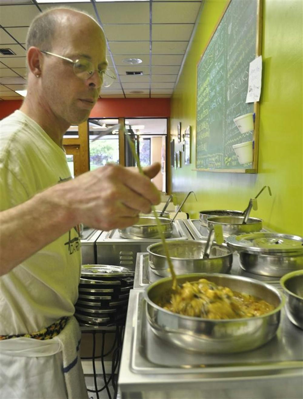 Owner of Darn Good Soup, Nels Boerner checks on the quantity of soups in his shop on Thursday afternoon. Sara Singh