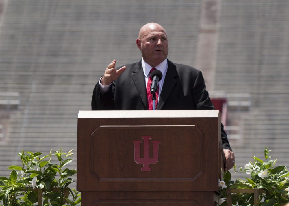 University of Colorado alumnus Steve Stripling recounts his days as a freshman playing football for then-Colorado coach Bill Mallory at the Celebration of Life program Saturday, June 2, at Memorial Stadium. Stripling is now the defensive line coach at the University of Cincinnati.